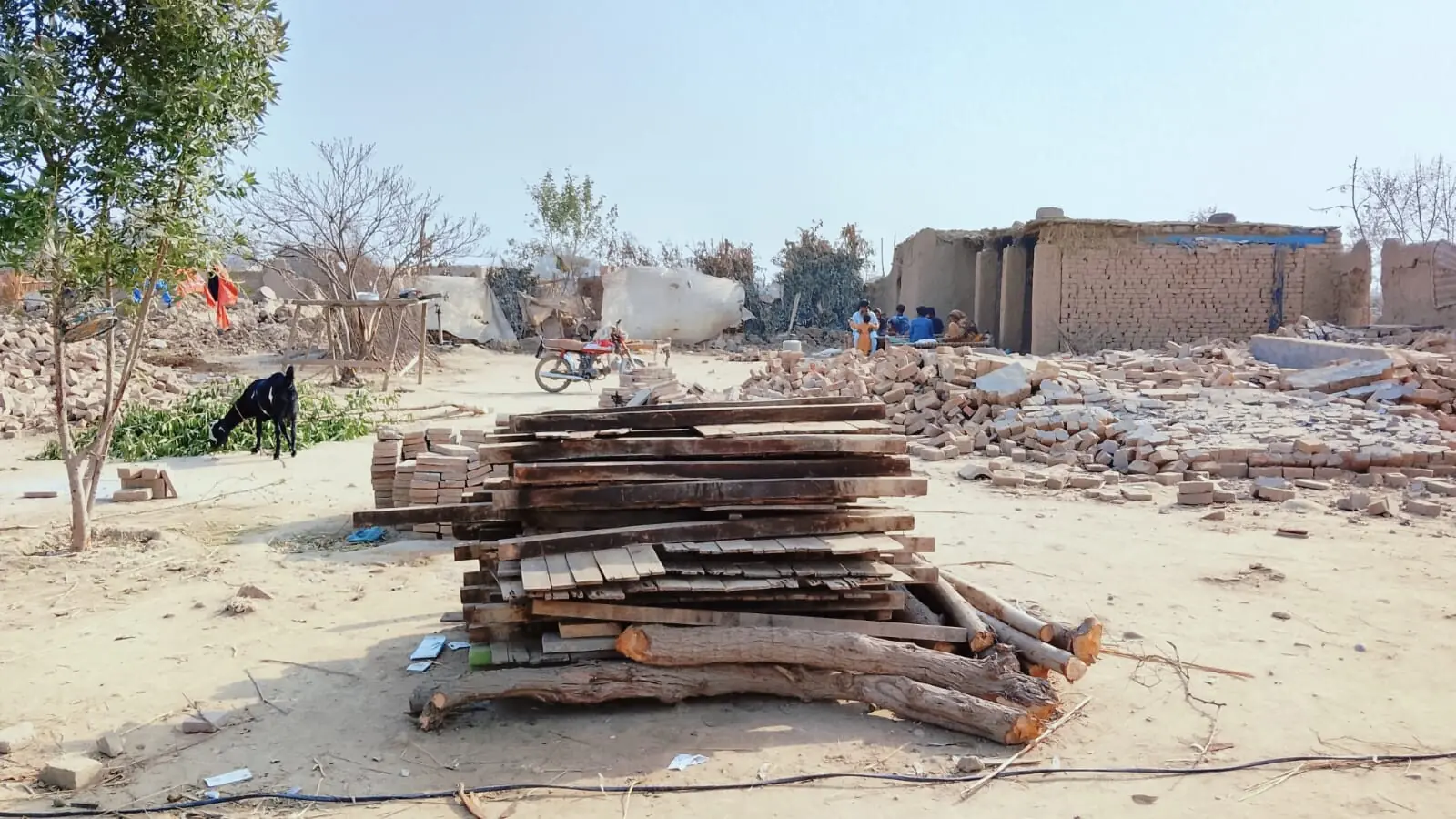 This aerial view shows partially submerged residential buildings following the overflowing of the Ravi River in Lahore on August 30, 2025.PHOTO:AFP