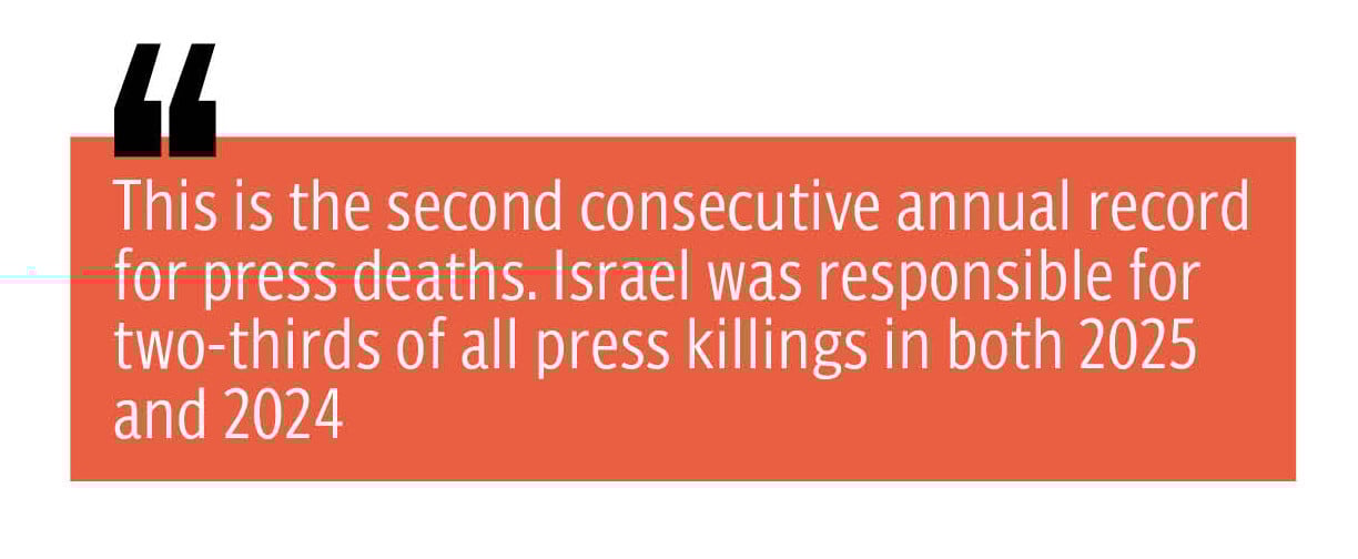 Israel responsible for two-thirds of 2025 media worker deaths: CPJ